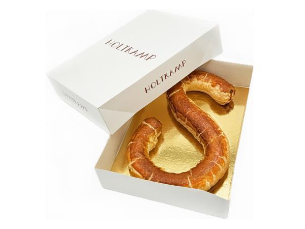 Roomboter bladerdeeg gevuld met amandelspijs gevormd in de letter S