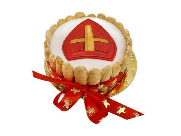 Vanillebavaroise met fruit. Afgemaakt met biscuits de savoye, en sinterklaasthema. Voor 5 personen